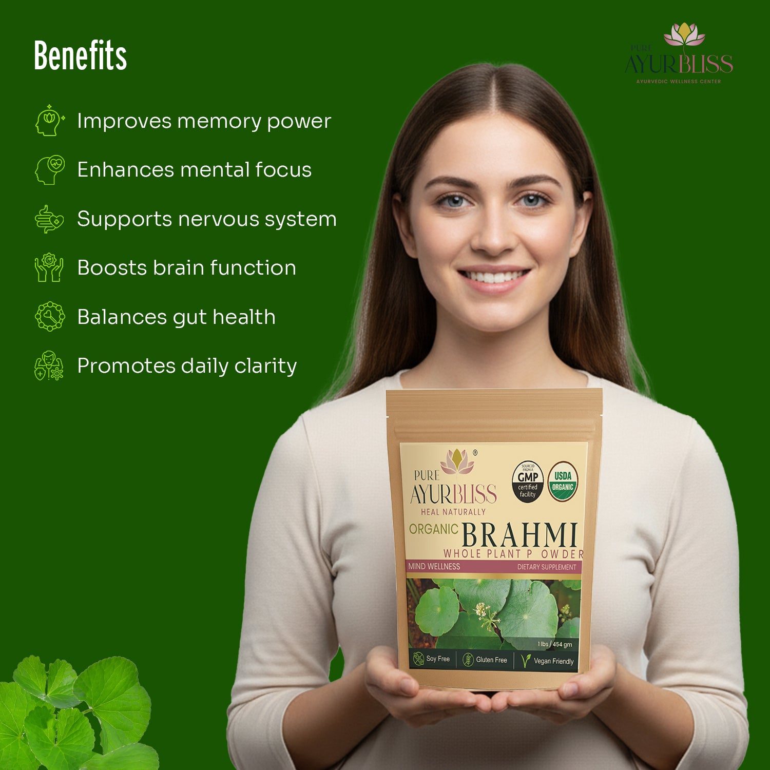 Brahmi Powder is a revered Ayurvedic herb known for its powerful nootropic properties.